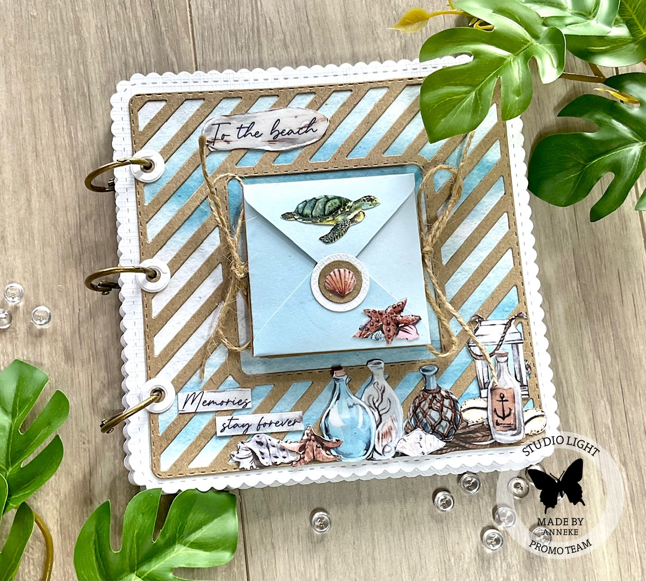 Wat een super leuk boekje laat je ons zien en leuk met dat envelopje op het harmonica boekje. De pagina's zijn prachtig met dit mooie vakantie papier en leuk hoe je het kader in 2 delen hebt gebruikt. Ik vind het weer geweldig mooi!!